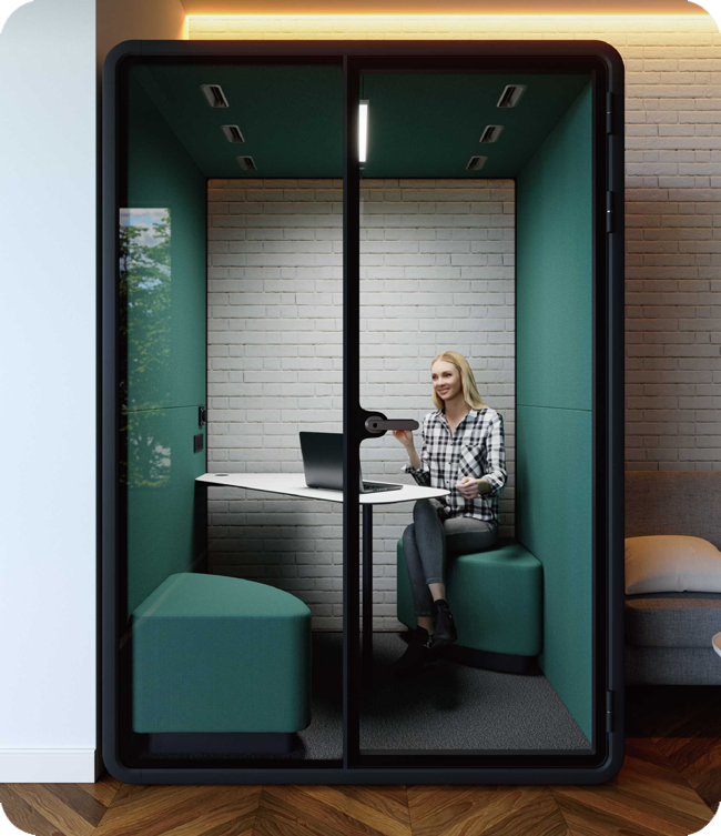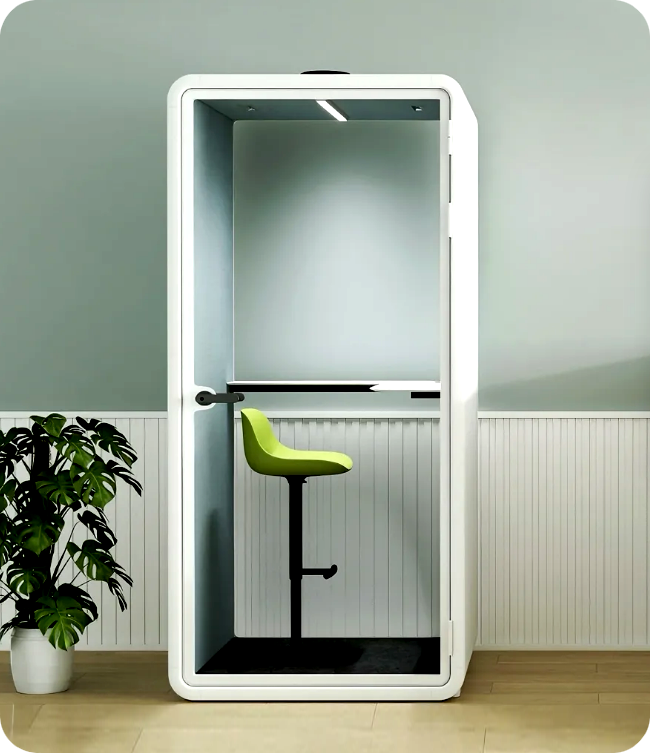 VocoPod is engineered with premium acoustic materials to reduce external noise by more than 29 dB, ensuring a quiet, distraction-free environment suitable for calls, meetings, and deep focus work.