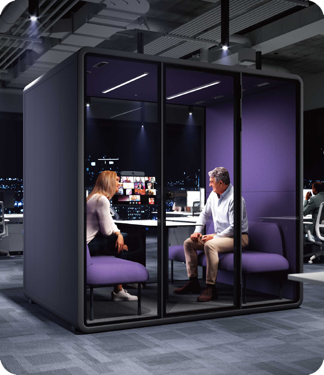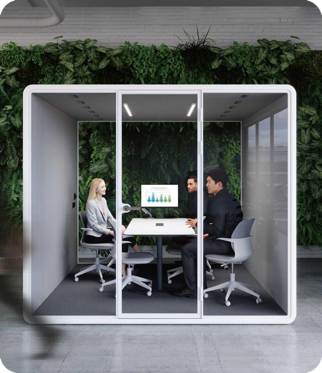 Our pods are built using recyclable surface materials, low-emission components, and energy-efficient LED lighting with Ra 92 color rendering for a natural feel.